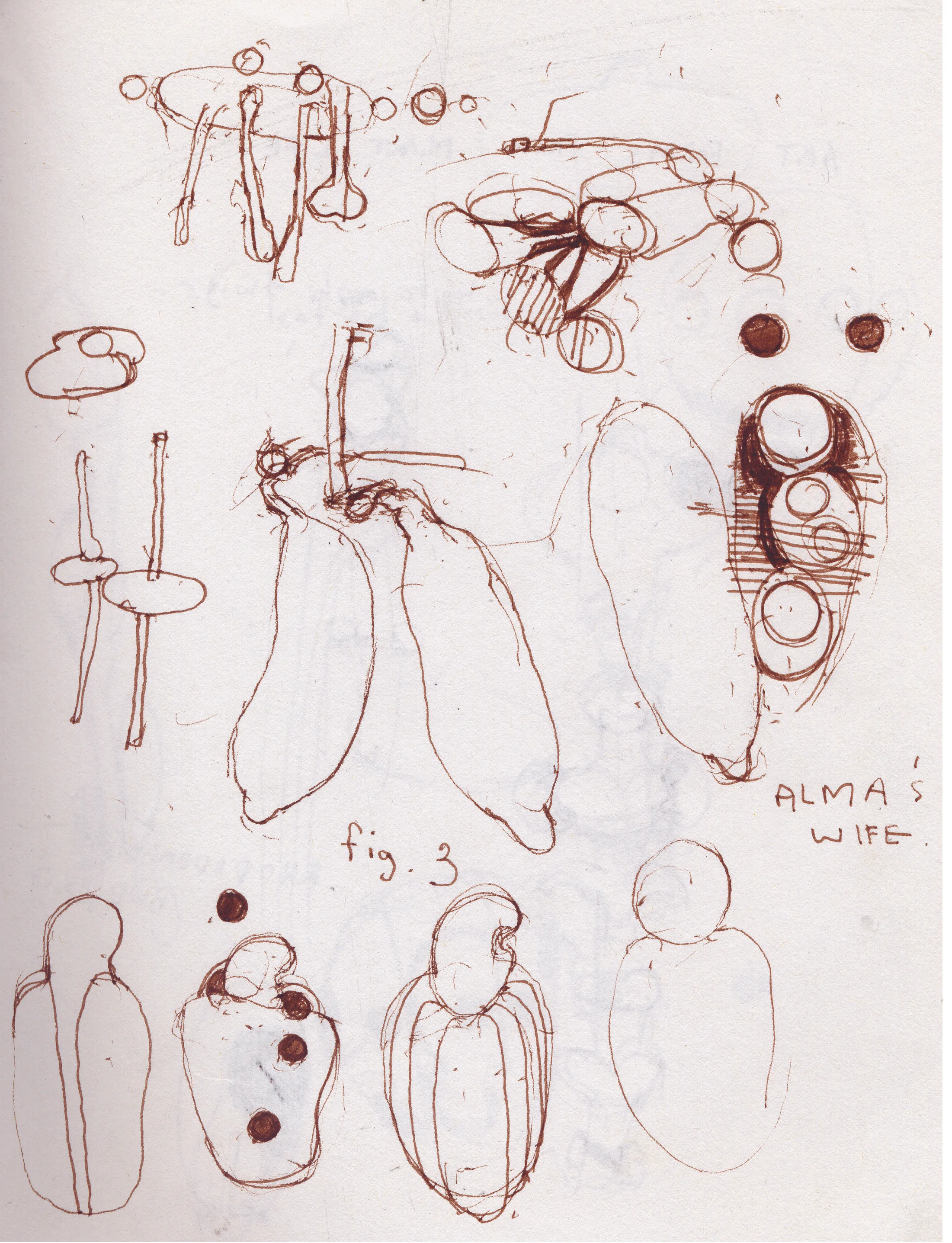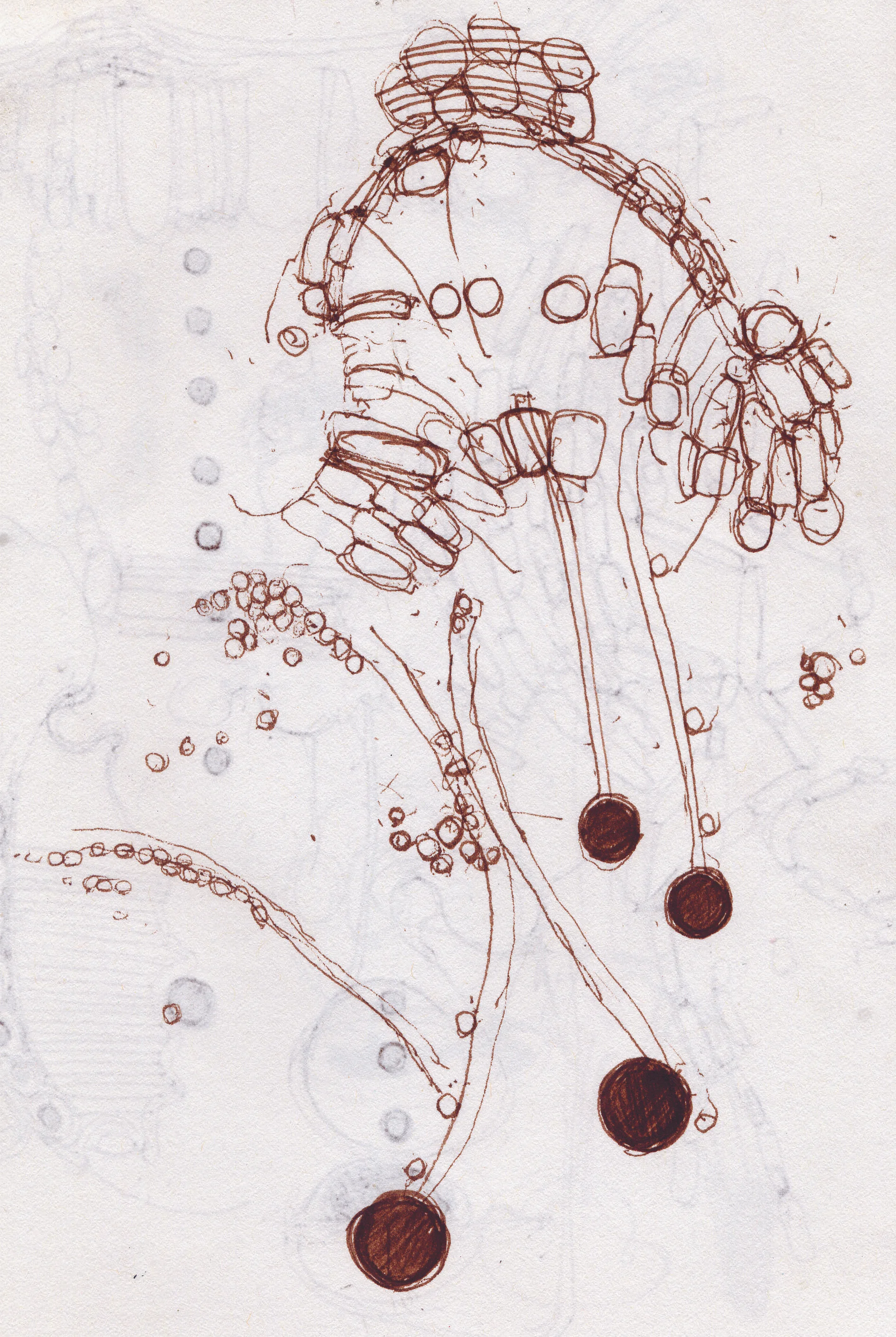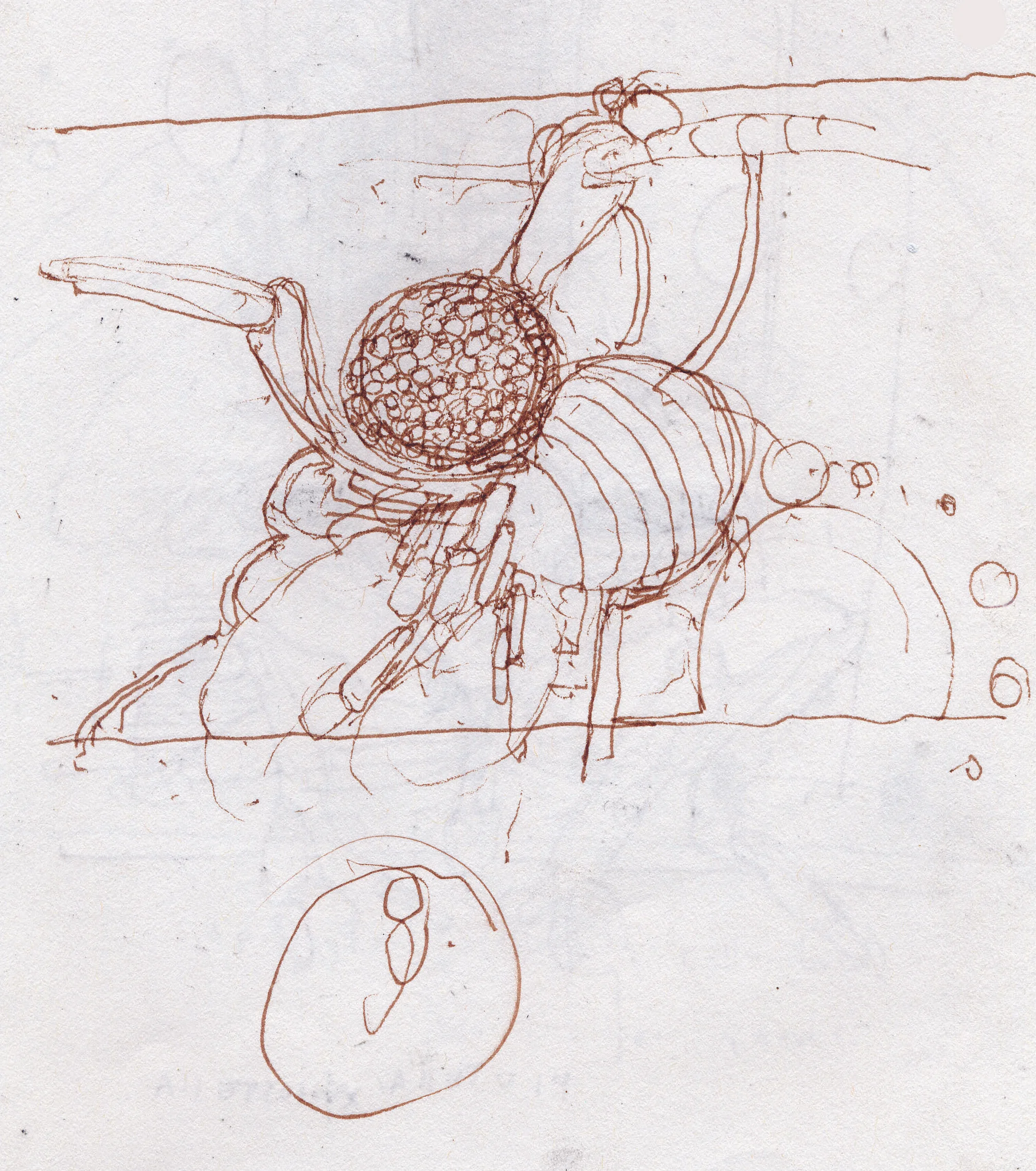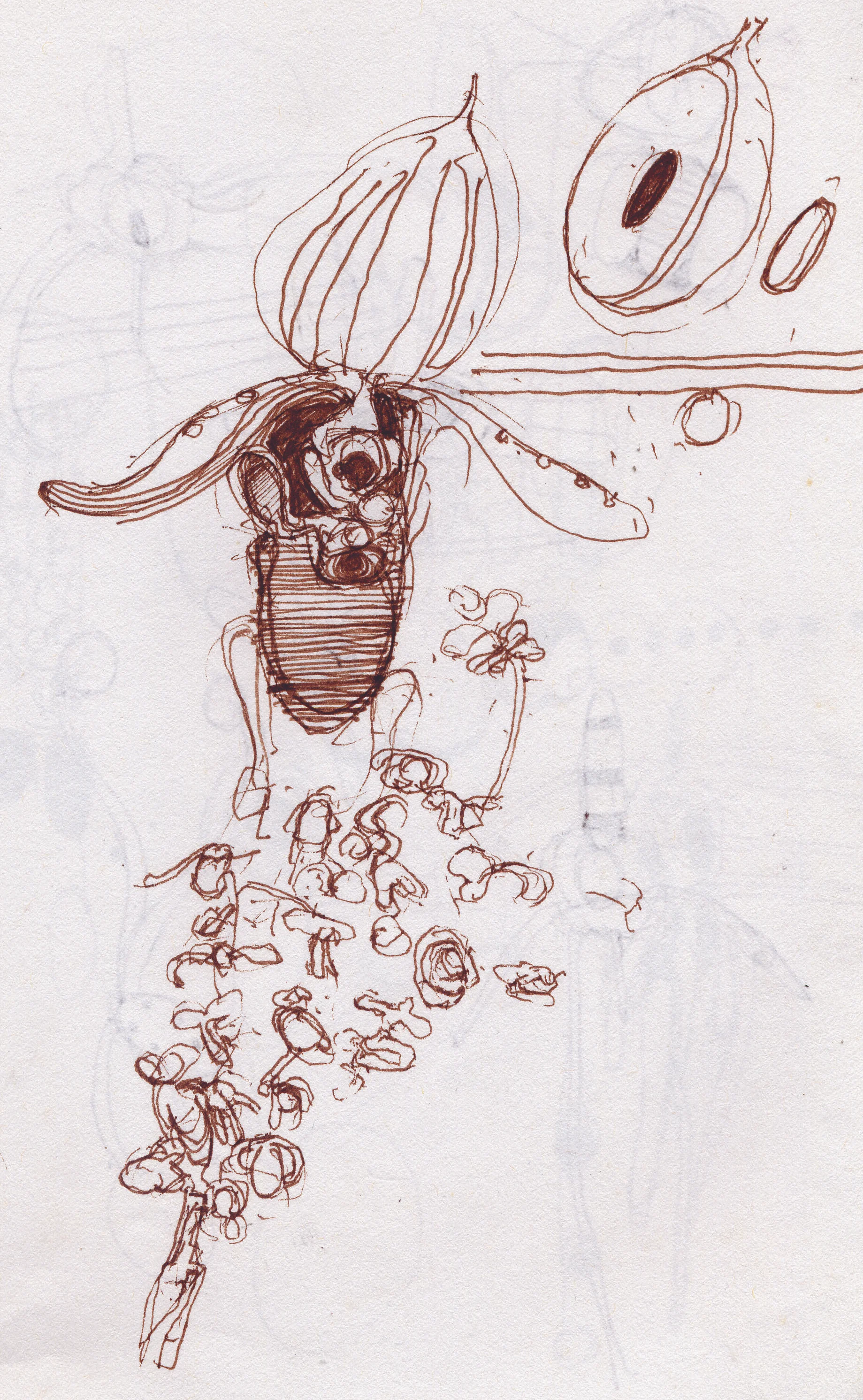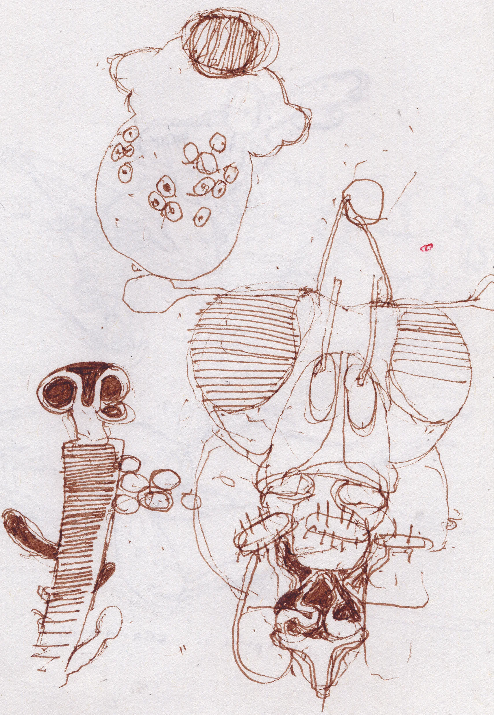 A selection of drawings in a sketchbook, derived from various books on plant life. Less observational or descriptive the drawings attempt to 'unpack' the graphic essence of the forms, shapes and the fluidity inherent in plants/flowers etc.